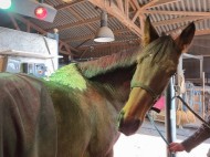 Elle s’est blessée au niveau du garrot et à l’épaule. Il y avait une inflammation musculaire importante, impossible de la seller ni même simplement de la couvrir.