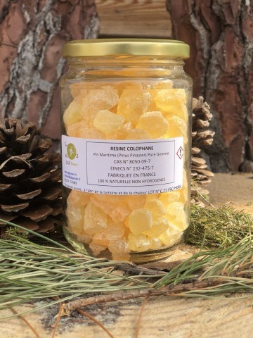 Composition* : Notre colophane est composée à 88 % d'acides résiniques ; 3.30 % de sesquiterpènes ; 3.18 % de neutral diterpènes.